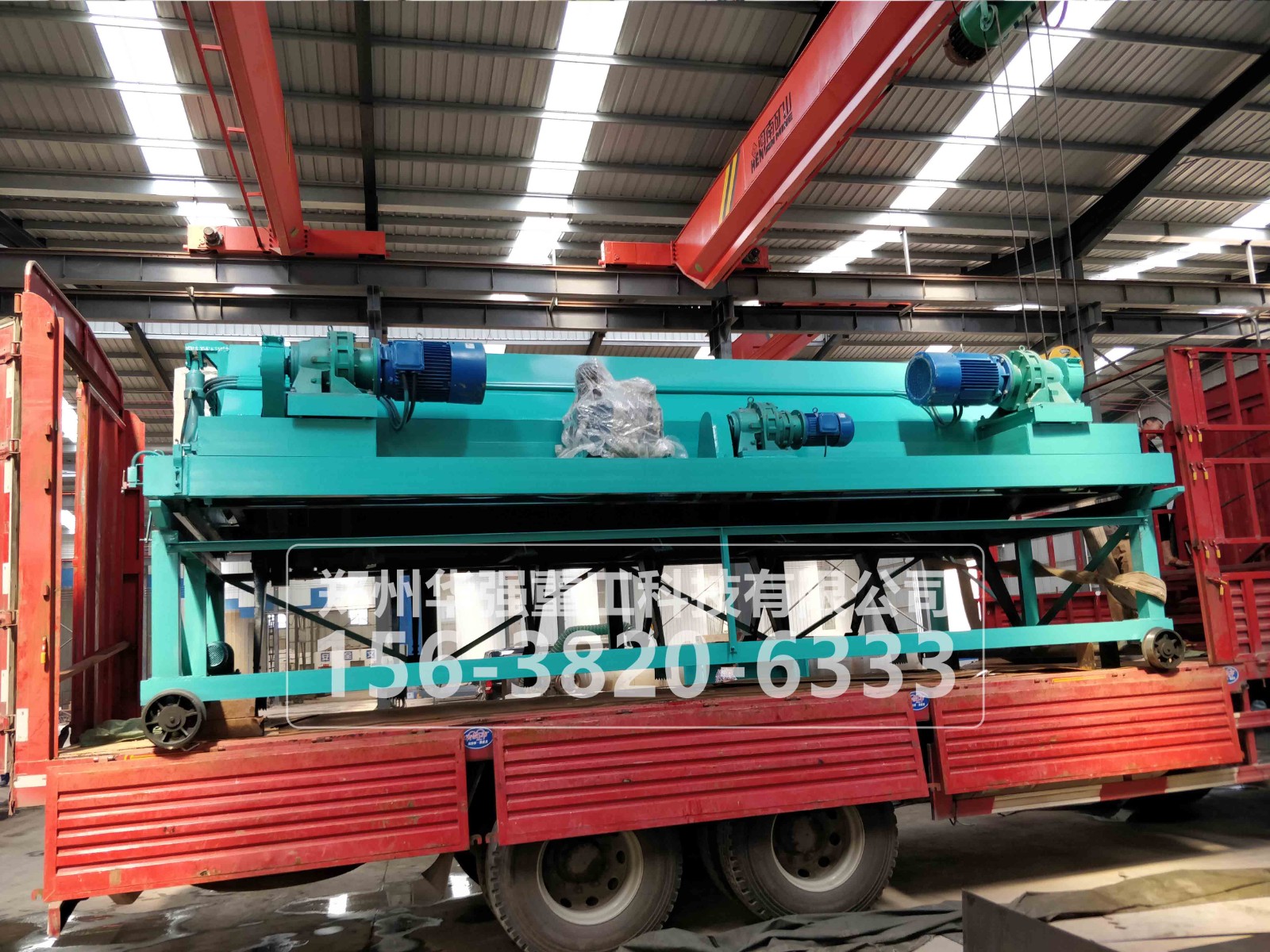 槽式翻堆機(jī)由傳動(dòng)裝置、提升裝置、行走裝置、翻堆裝置、轉(zhuǎn)移車等主要部件組成。電動(dòng)機(jī)直接將動(dòng)力傳給擺線針輪減速器經(jīng)鏈輪至翻堆滾筒,滾筒上的攪拌槳葉呈螺旋分布??蓪l(fā)酵槽內(nèi)的物料翻轉(zhuǎn)攪拌移動(dòng)至0.2-1m遠(yuǎn)的位置,起到翻堆速度快、攪拌均勻的效果,從而達(dá)到物料與空氣的充分接觸。